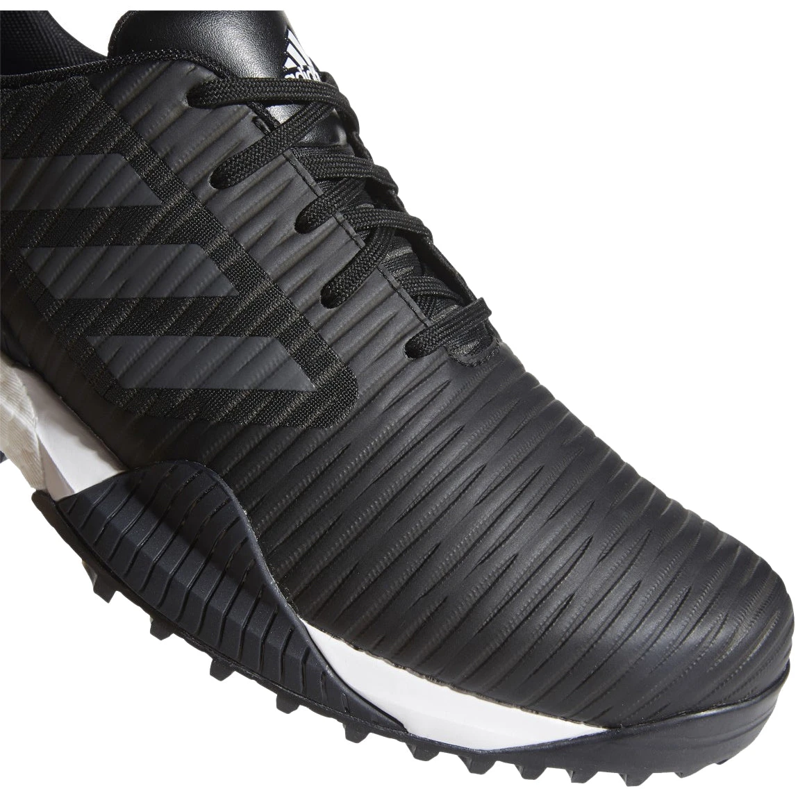 Designed to provide golfers with lightweight comfort and stability throughout the round comes the Adidas CodeChaos Golf Shoes. These shoes feature a FitFoam molded polyurethane sockliner and flexible Bounce midsole cushioning that keep golfers comfortable on every hole. The waterproof and synthetic upper with film overlay keeps the shoes protected from the elements and the durable Adiwear outsole provide enhanced stability and traction with every swing of the club.