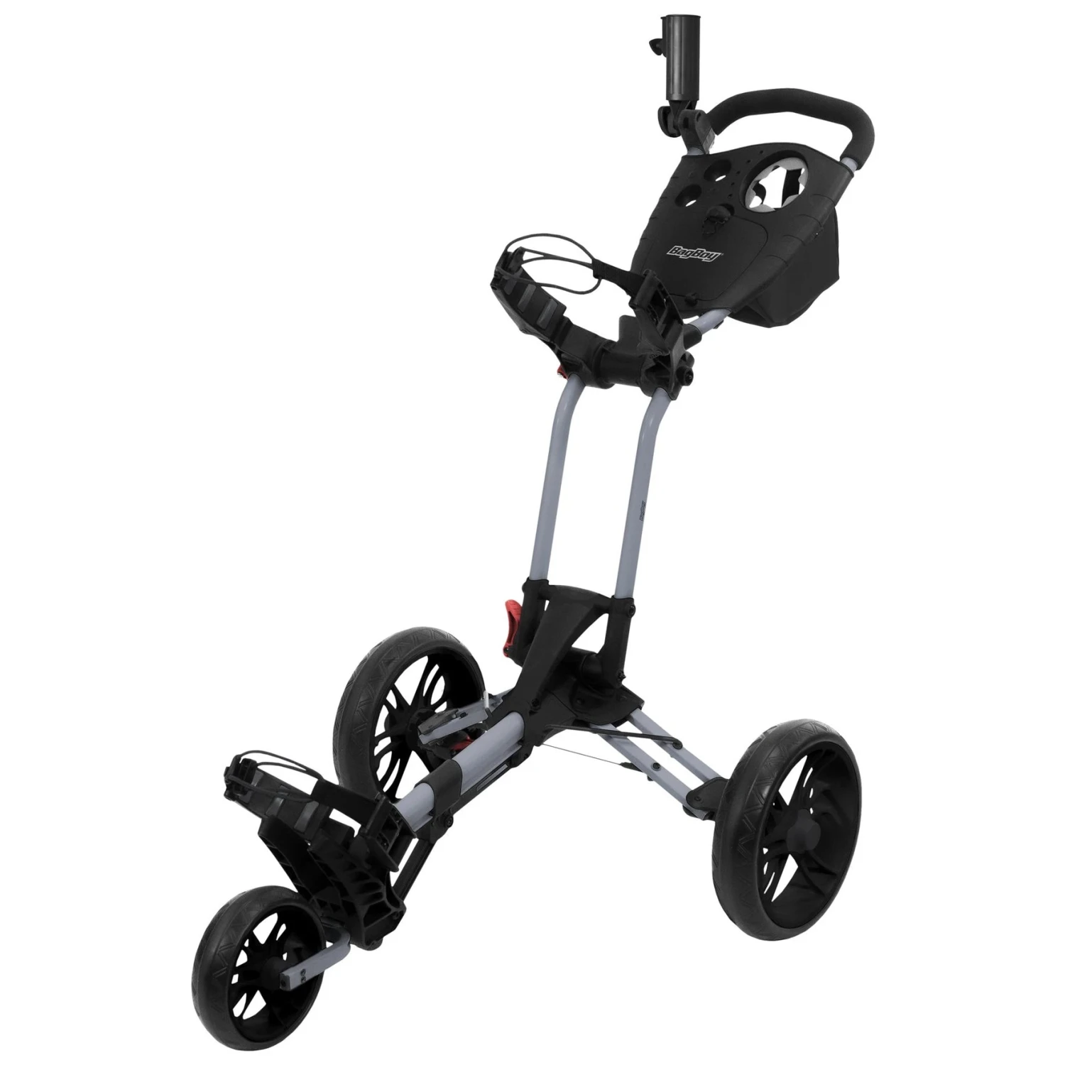 Transport your bag around the golf course with ease with the Bag Boy Spartan XL Push Cart. The Spartan XL features two oversize 13 inch rear wheels and a front wheel that will roll over the course with ease. There is an extra-deep scorecard console with built-in beverage holder and accessory bag under the scorecard console that is useful for storing tees or a cell.
