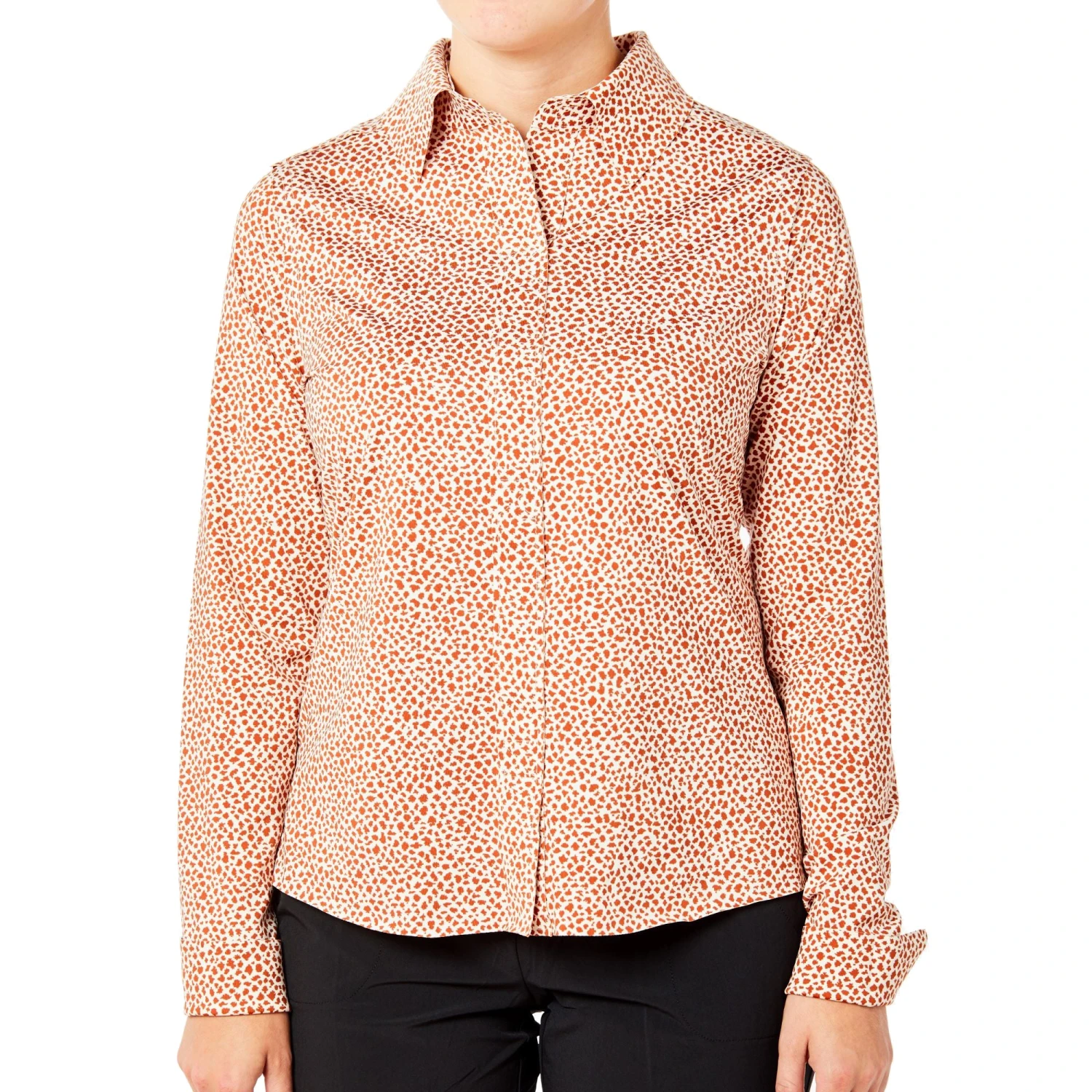 Get basic, yet not basic styling with the Belyn Key Keystone Long Sleeve Shirt. This shirt has been designed to look like a blouse and is fully seamed up the front that creates an easy pull on style with no buttons or snaps. The collar and cuffs on the Keystone are bonded for a starched appearance and is super soft to the touch. You will look sophisticated on and off the course with the Keystone shirt.