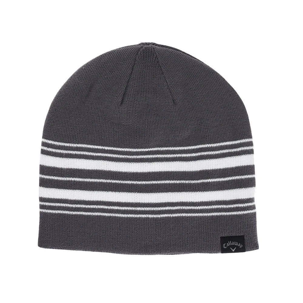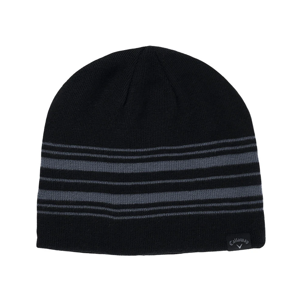The Reversible Mens Golf Beanie delivers two-for-one warmth and style. Featuring a bold Callaway branding on one side and a piping stripe on the other, this beanie can change your look in an instant while still providing endless warmth from the chill.