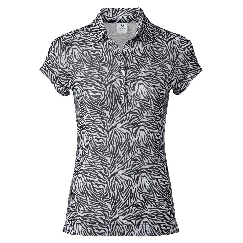 The Daily Sports Kiara Mesh Golf Polo is designed to give you that extra bit of style out on the golf course. Great to pair with shorts or skorts! It features a snap button placket, self-collar, slim fit, and all-over tiger print. This polo is made of quick dry stretch fabric that is both breathable and moisture-wicking so you can remain comfortable all day long.