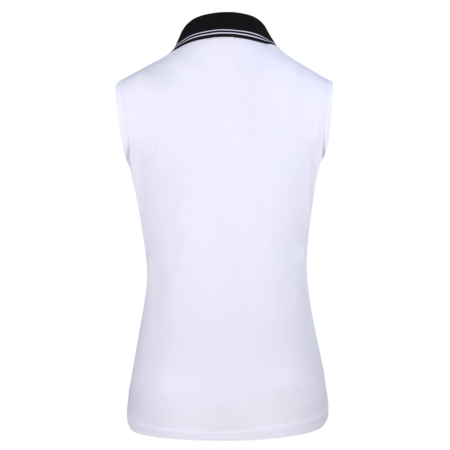 Get feminine styling in a sleeveless design that lets you show off the guns in the Daily Sports Kinsey Golf Polo. The Kinsey comes in a Regular fit that is built with a high tech breathable material that provides excellent ventilation and rapid moisture absorption that pulls sweat from the body to keep you dry and comfortable during your round. The fabric also dries quickly and will not fade from sunshine and has a stylish blue, black and mint leaf print all over.