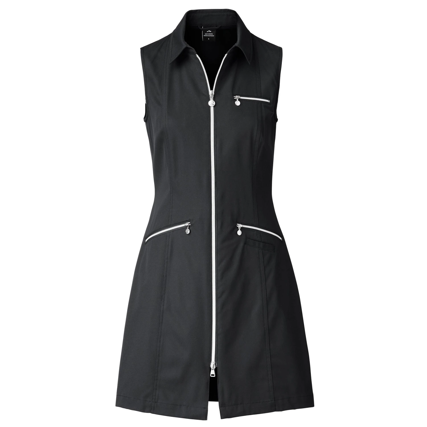 The Daily Sports Lyric Dress was designed to have you looking your best, from the course or the cart. This dress features a classic polo collar and a full front, two-way zipper for ease of use and accessibility. There are two front top loading zippered pockets and one chest pocket that provide plenty of storage space for balls, tees, and scorecards. The high-tech fabric is water resistant, quick drying, and breathable to keep you feeling and looking your best during your round.