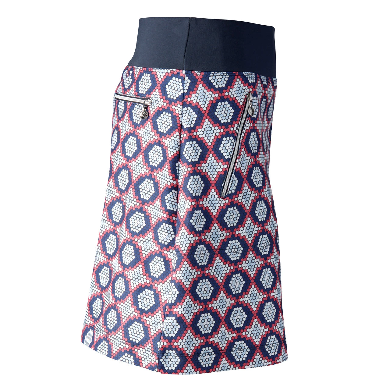 Get comfort and a freedom of movement on the course with the Daily Sports Moa Golf Skort. This skort is made in a crease-free and permanent-press fabric that is quick drying and also provides excellent ventilation and rapid moisture absorption to keep you cool, dry and comfortable during the round. There are two front zip pockets and a back zip pocket that are great for storing balls, tees and glove and a matching polyester skort lining provides ample coverage during your swing.