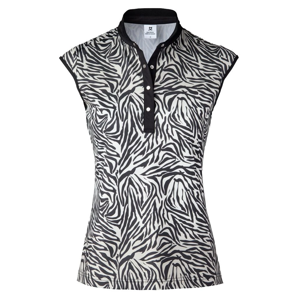 The Daily Sports Tiana Golf Polo is designed for the woman who wants to add some extra style to her golf wardrobe. Great to pair with pants or skorts! It features a snap button placket, round collar, cap sleeves, and all-over tiger print pattern. This polo is made of quick dry stretch fabric that is both breathable and moisture-wicking so you can remain comfortable all day long.