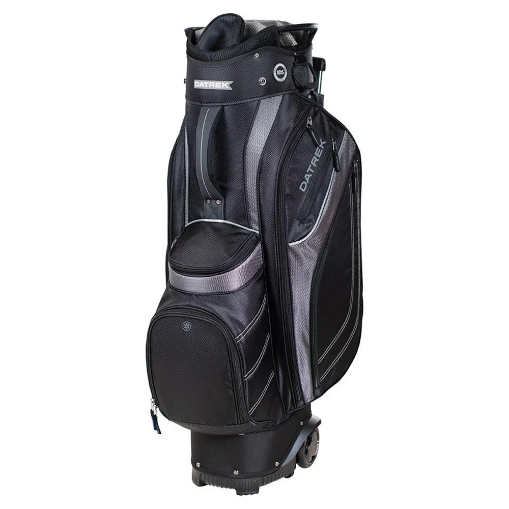 The Datrek Transit Golf Cart Bag provides golfers with plenty of storage options that a great for your round. There is a 14-way organizer top with full length dividers and an individual putter well that allow golfers to organize and sort their clubs. There are eight zippered pockets that can be utilized for storing anything you will need and a deluxe neoprene handle allows for easy carrying.