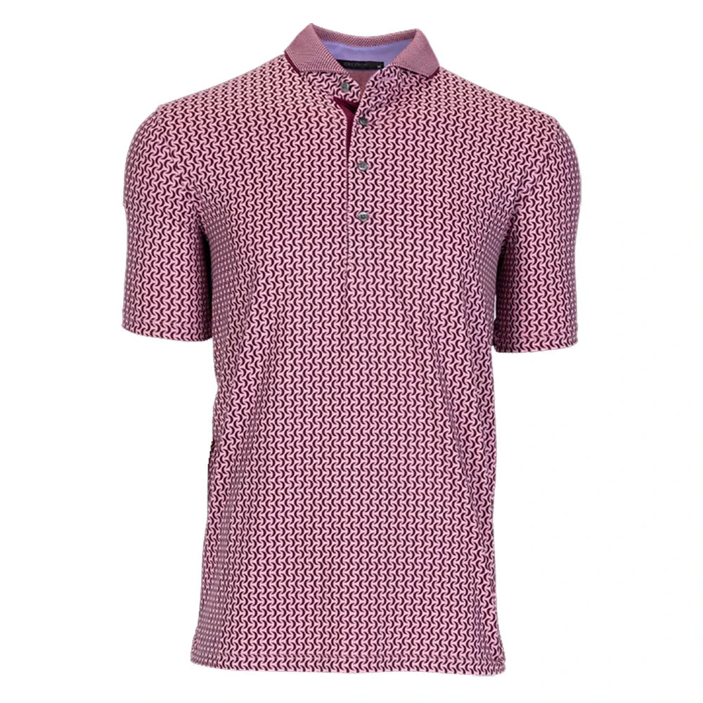 Look like a winner with the Greyson Moonshine Mens Golf Polo. Constructed from a polyester/spandex blend, this polo offers antimicrobial and moisture-wicking properties along with four way stretch for sophisticated comfort and freedom of movement on and off the golf course. It features a four button placket, jacquard collar, and an all-over moon motif pattern for an added touch of style.