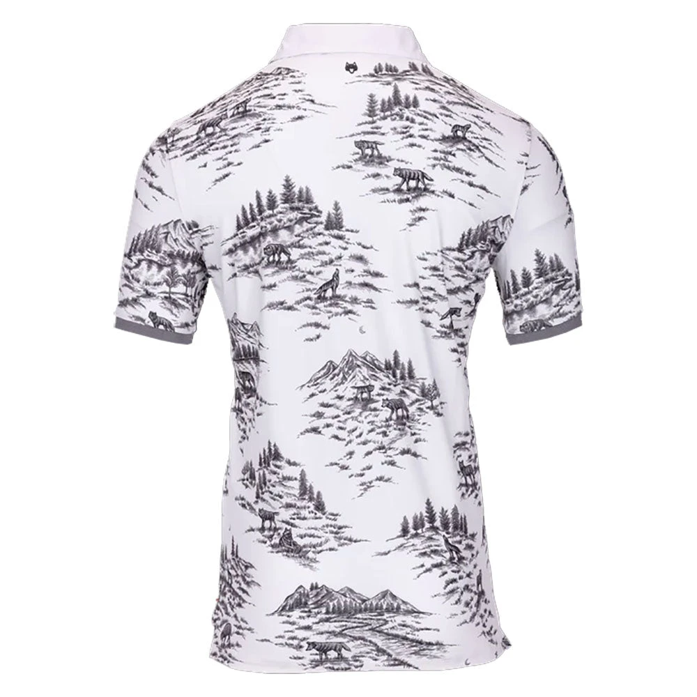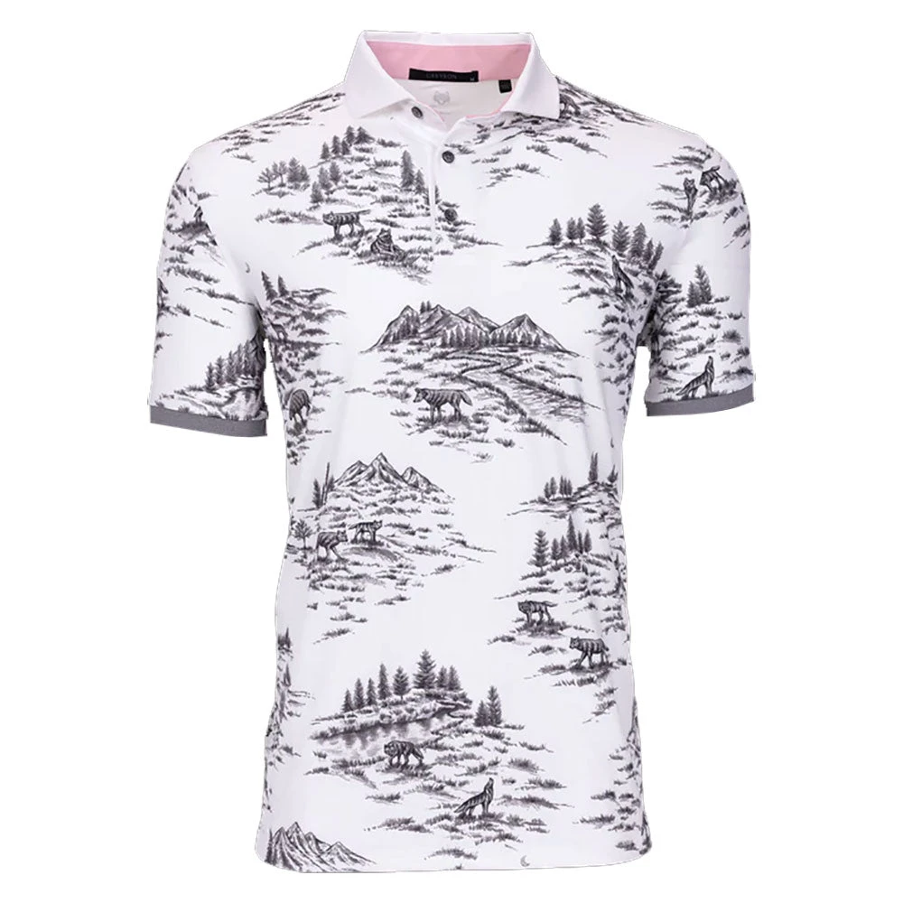 Get a modern look with the Greyson Wolf Toile Mens Golf Polo. Constructed from a polyester/spandex blend, this polo is designed to provide superior comfort and freedom of movement on and off the golf course. It features a three button placket, banded sleeves, and a striking print for an added touch of style.