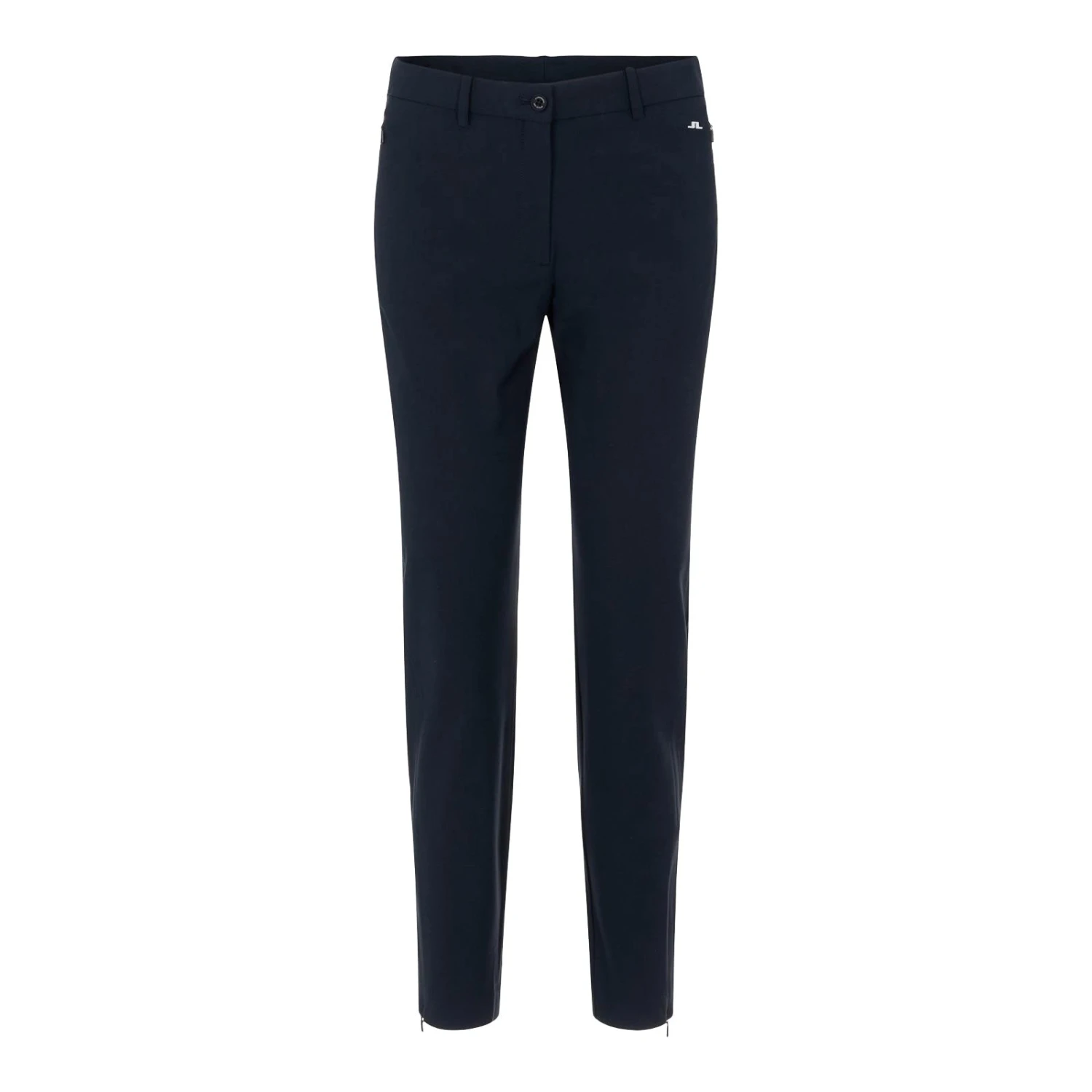 The J. Lindeberg Dana Golf Pants are crafted from lightweight and stretchable Micro High Stretch fabric and are designed for the high demand and flexibility required for golf. It features a brushed interior lining for extra warmth and a surface twill structure that gives you high stretchability in all directions. It also has side pockets with zippers, zipper at leg opening, and mid-rise. Moisture wicking, water repelling, and fast drying material will keep you protected in any conditions.