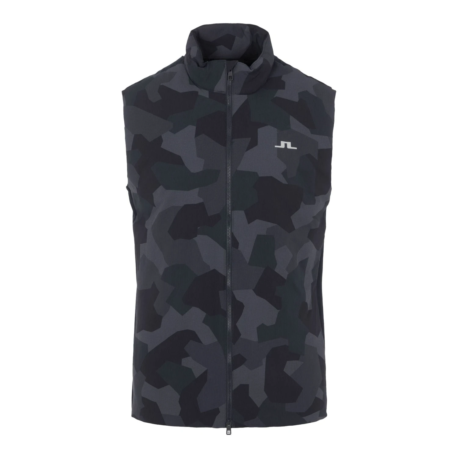 Play in style and comfort with the J. Lindeberg Packlight Print Mens Golf Vest. This packable vest features a striking camo print on the front with the JL logo at the chest. Made with Ringstop Light and padded Primaloft, this vest will keep you protected where you need it most. The fabric is water repellent, windproof and has great stretch so you can swing with ease.