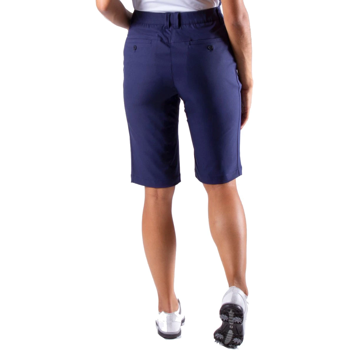 Get a classic fit with the NVO Bailey Long Golf Shorts. The Bailey shorts are built with a moisture wicking material that is quick drying to pull sweat from the body so you stay dry and comfortable throughout the golf round. These shorts come in a classic fit for a flattering look and two front and back pockets provide ample storage space for balls or tees. The UPF 40+ sun rating will keep you protected from the harmful UV rays of the sun.