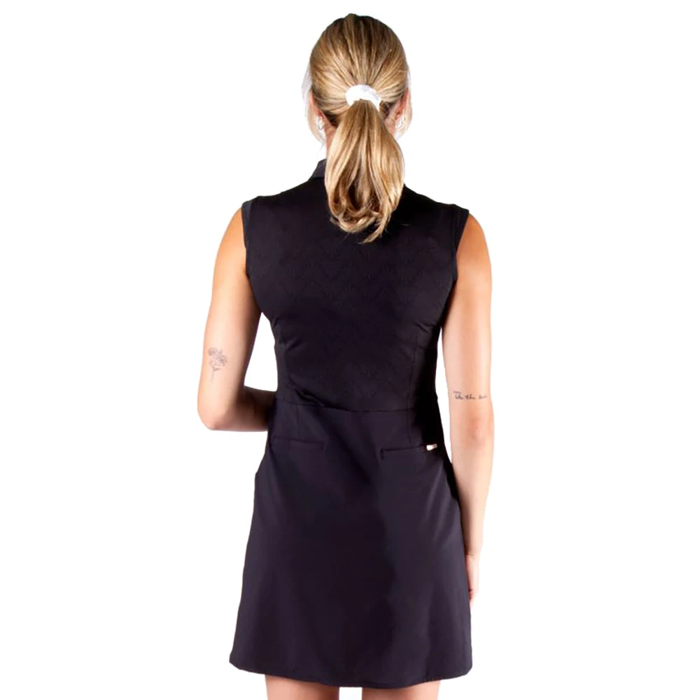 Perfect for the golf course comes the NVO Emilia Golf Dress. The Emilia is built with a moisture wicking material that is quick drying to pull sweat from the body so you stay dry and comfortable throughout the golf round. This dress is semi-fitted for a flattering look and the zip closure allows you to control the coverage and it also adds subtle styling so you look good on and off the golf course. The UPF 40+ sun rating will keep you protected from the harmful UV rays of the sun.