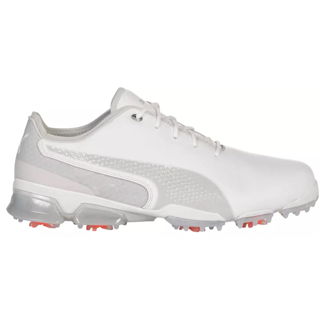 Attack every shot with confidence with the Puma Ignite ProAdapt Golf Shoes. The upper of this shoe utilizes the Adaptive Fit System that has a molded comfort collar on the inner and a premium leather on the outside. The AdaptFoam sits between your foot and the ProAdapt outsole to give golfers custom comfort to enjoy walking the course. The Dual Durometer Tornado cleats will grip the ground to provide the best ground-feel and traction.