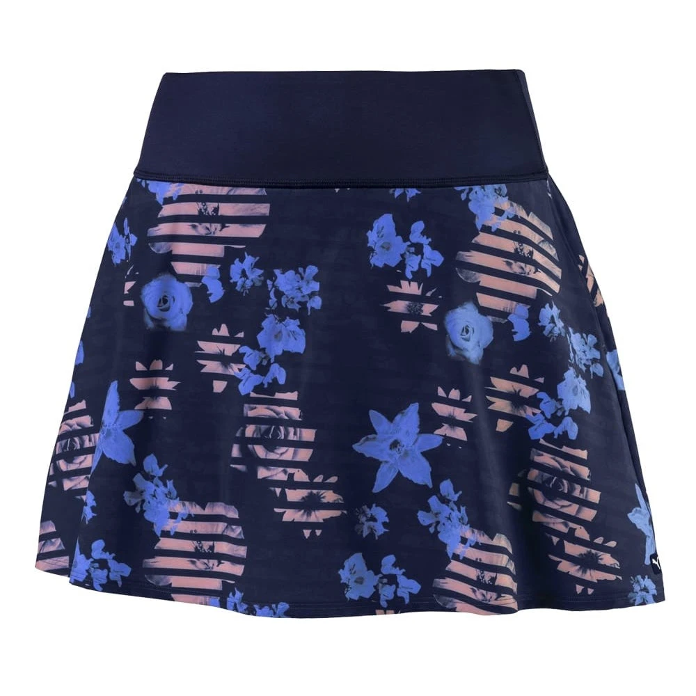Take your skirt game to the next level with the Puma PWRSHAPE Floral Skort. This skirt features a PWRSHAPE waistband and stretch woven body to provide golfers with more shape and volume which makes it a highly flattering skort. A moisture wicking finish will pull moisture away from the body to keep you dry and comfortable. The vibrant floral print with a stripe that runs through it which will turn heads and have you looking good out on the links.