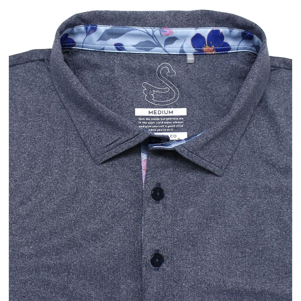 The Swannies Burton Golf Polo is a comfortable, solid look that you can wear both on and off the course. Great to pair with shorts or pants. This polo is extra comfy, super stretchy, and extremely durable. It features a three-button placket, floral trim on inside collar and placket, and right sleeve tab logo.