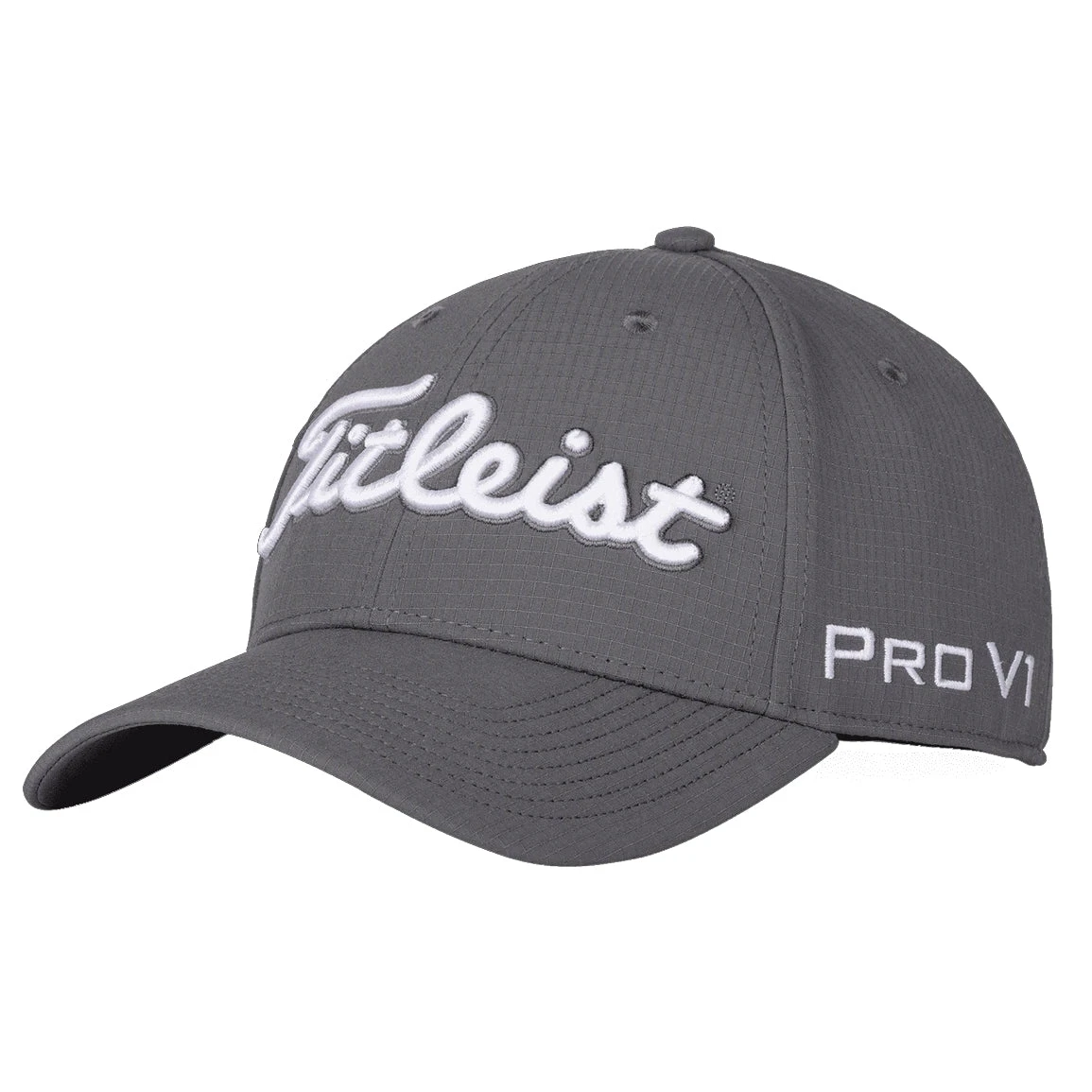 Look like the pros with the Titleist Tour Elite Legacy Hat. This hat features an ultra-lite, temperature-regulating build that provides unmatched performance and the antimicrobial, moisture wicking sweatband will keep you dry and comfortable and smelling fresh. The Tour Elite is also built with 50+ UPF UV treatment that will keep you protected from the harmful UV rays of the sun and the standard curved bill provides a classic look that will have you looking good on and off the course.